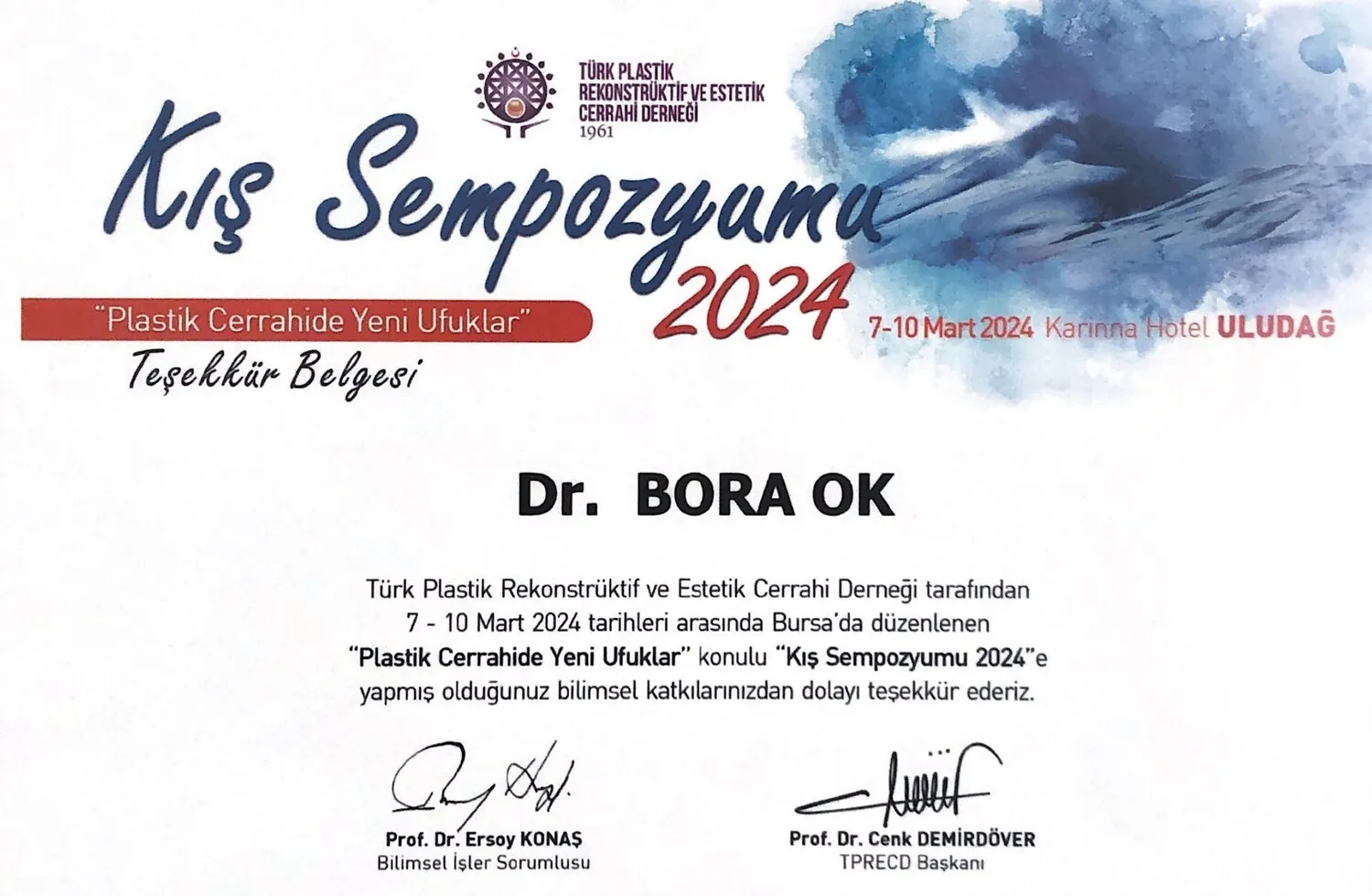 Akyurek M., Onsal E., Ok B., Uzunismail A., Poster presentation , BAPRAS 2011 7. CONGRESS OF THE BALKAN ASSOCIATION OF PLASTIC,RECONSTRUCTIVE AND AESTHETIC SURGERY, Eylül 2011, Saraybosna,Bosna – Hersek.