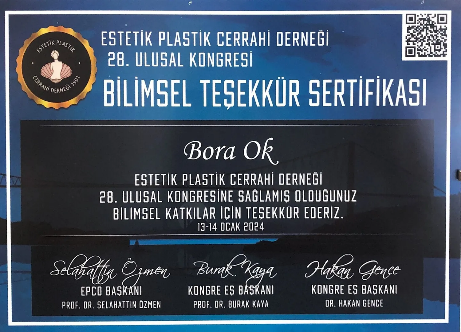 Ok B., Akyürek M., Akçay Ö, Uzunismail A., Poster presentation, BAPRAS 2011 7. CONGRESS OF THE BALKAN ASSOCIATION OF PLASTIC,RECONSTRUCTIVE AND AESTHETIC SURGERY, Eylül 2011, Saraybosna,Bosna – Hersek.