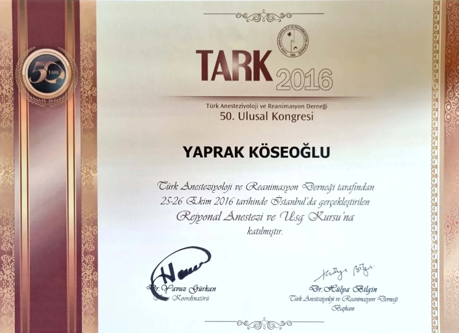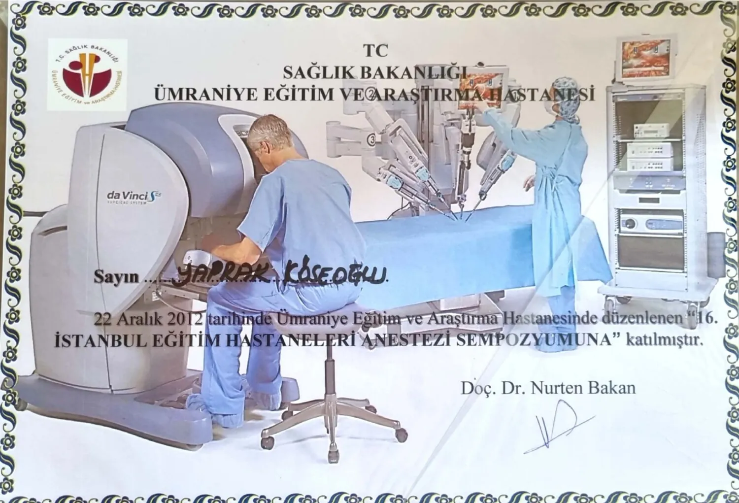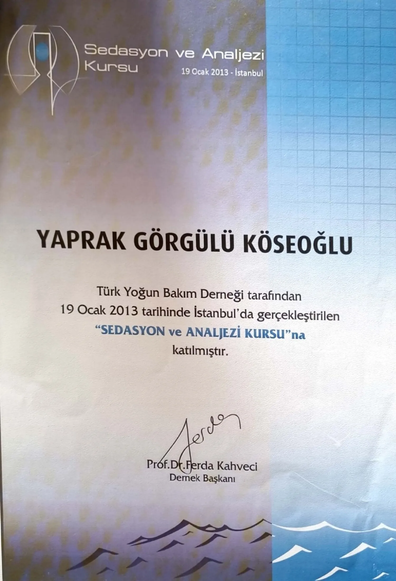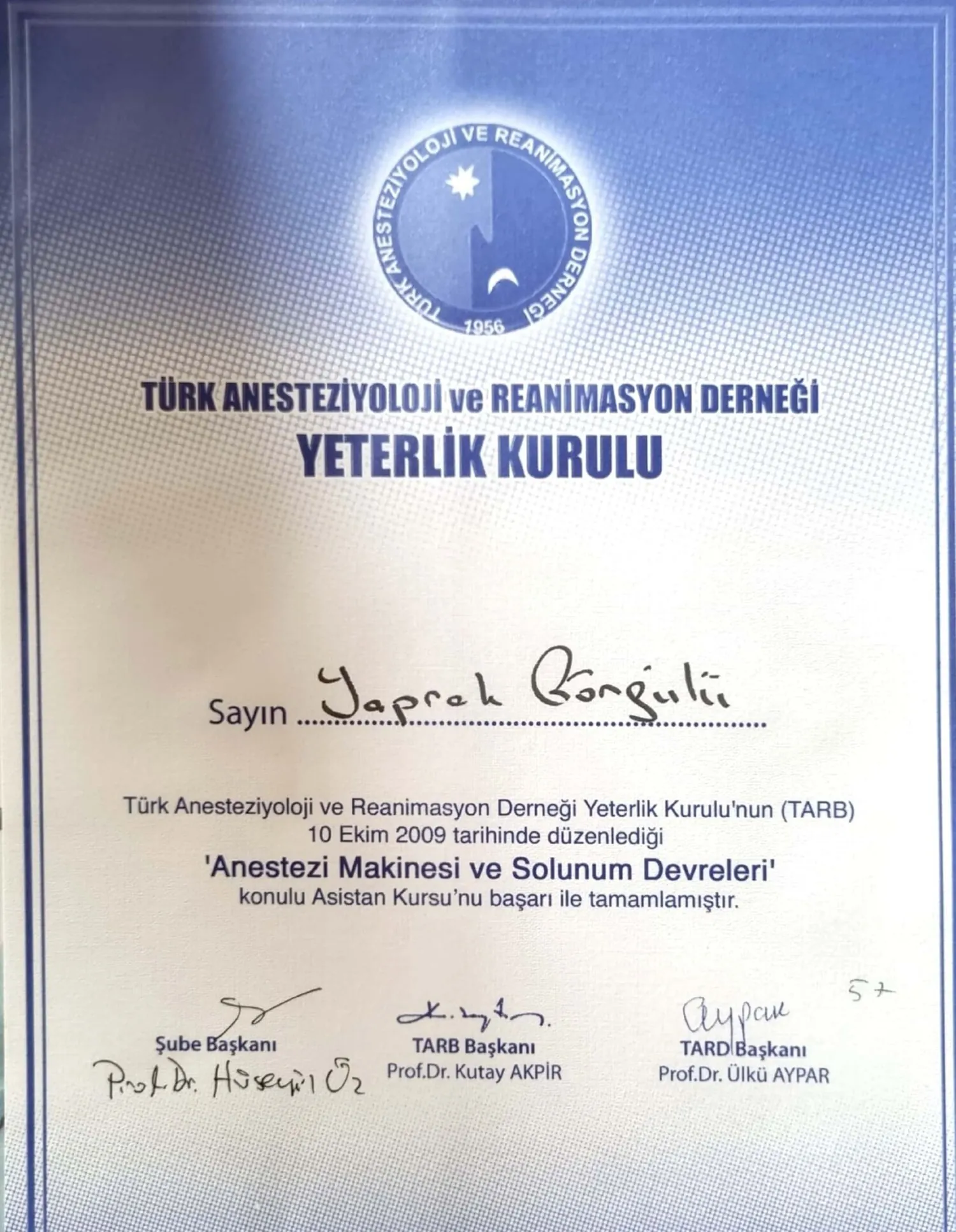 • Anestezi uzmanlık eğitimini Ağustos 2009 – Eylül 2013 tarihleri arasında Haydarpaşa Numune Eğitim ve Araştır- ma Hastanesi’nde tamamlamıştır.